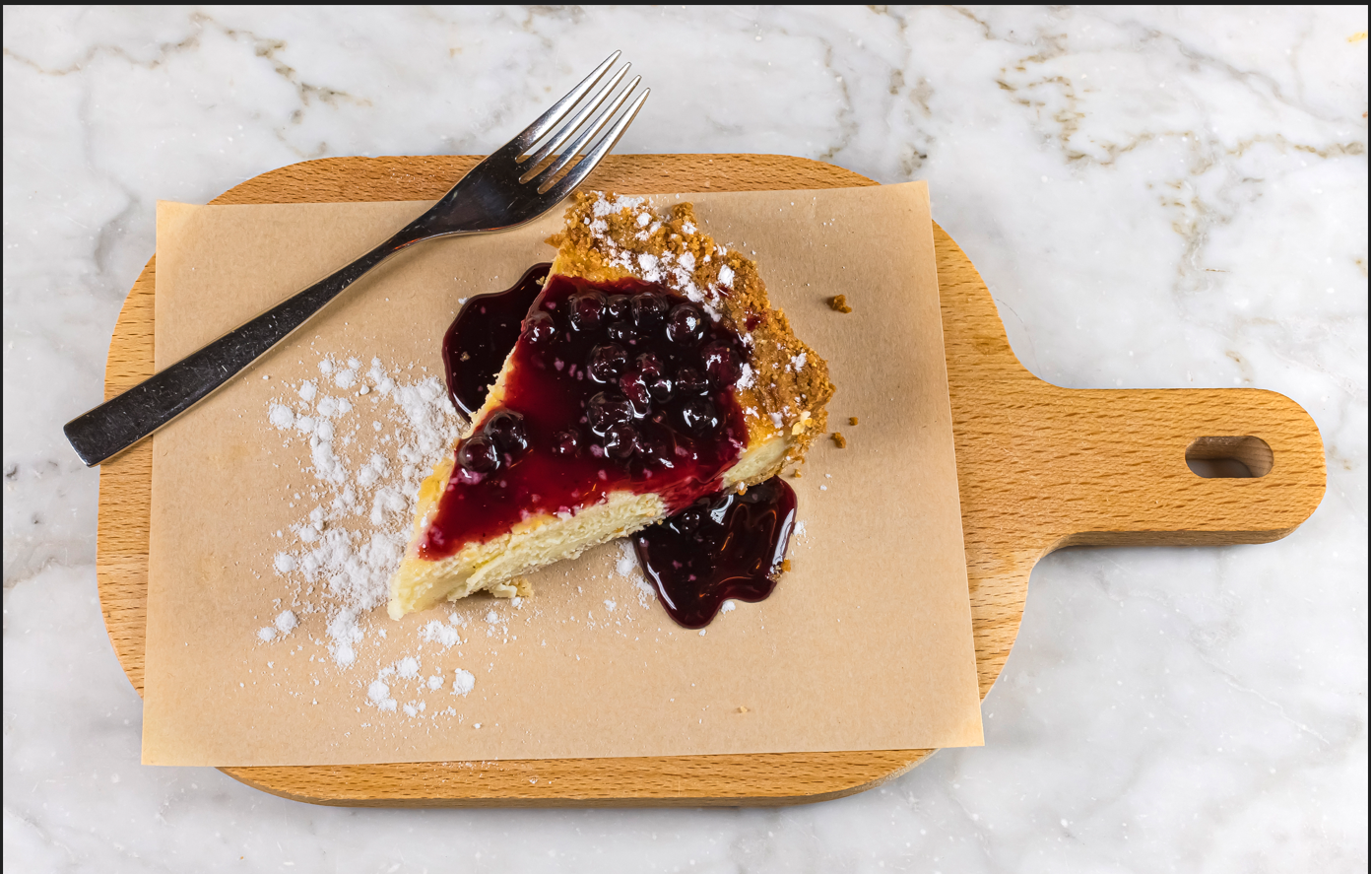 Crema al formaggio e vaniglia su base croccantecon salsa ai frutti di bosco